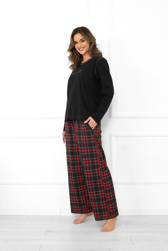 Italská móda dámské pyžamo tmavě melanžové, bavlna, dlouhý rukáv a kalhoty, kostkované