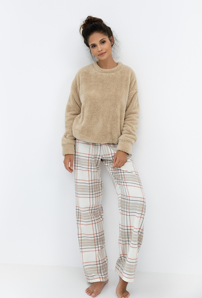 Dámské pyžamo Joyce Sensis - teplé pyžamo s měkkým vrškem a kostkovanými kalhotami