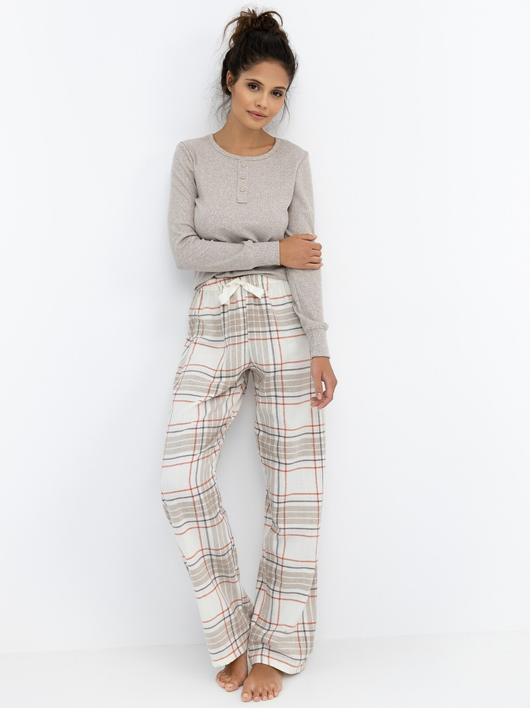 Dámské pyžamo Angelina Sensis - melanžová halenka a kostkované flanelové kalhoty