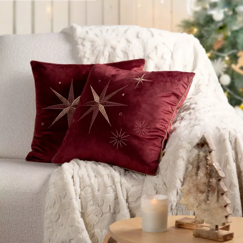- Elegantní vánoční povlak na polštář Eurofirany CHP 259 ve vínové barvě s výšivkou hvězdy v barvě šampaňského. Měkký samet s jemným leskem vytváří zvláštní atmosféru a dodává interiéru sváteční kouzlo.