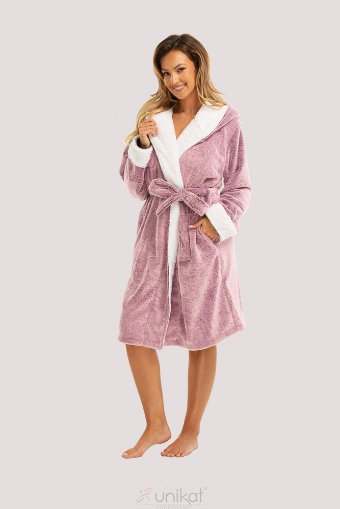 Model je v krásném odstínu růžové, což mu dodává na ženském půvabu. Díky kapuci, dvěma praktickým kapsám a bedernímu pásu je nejen elegantní, ale také funkční. Lehká konstrukce znamená, že župan neomezuje v pohybu, a přesto účinně udržuje teplo.