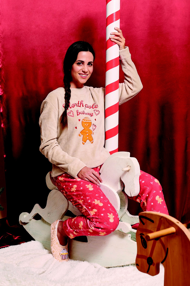 • Pyžamo Meddy Sorbetto z měkkého korálového fleecu vás zahalí do svátečního stylu. Mikina s houpacím koněm a nápisem "Ginger Horse", kalhoty s motivem perníku a cukrové třtiny
