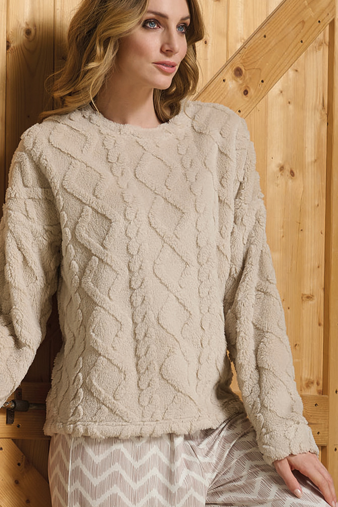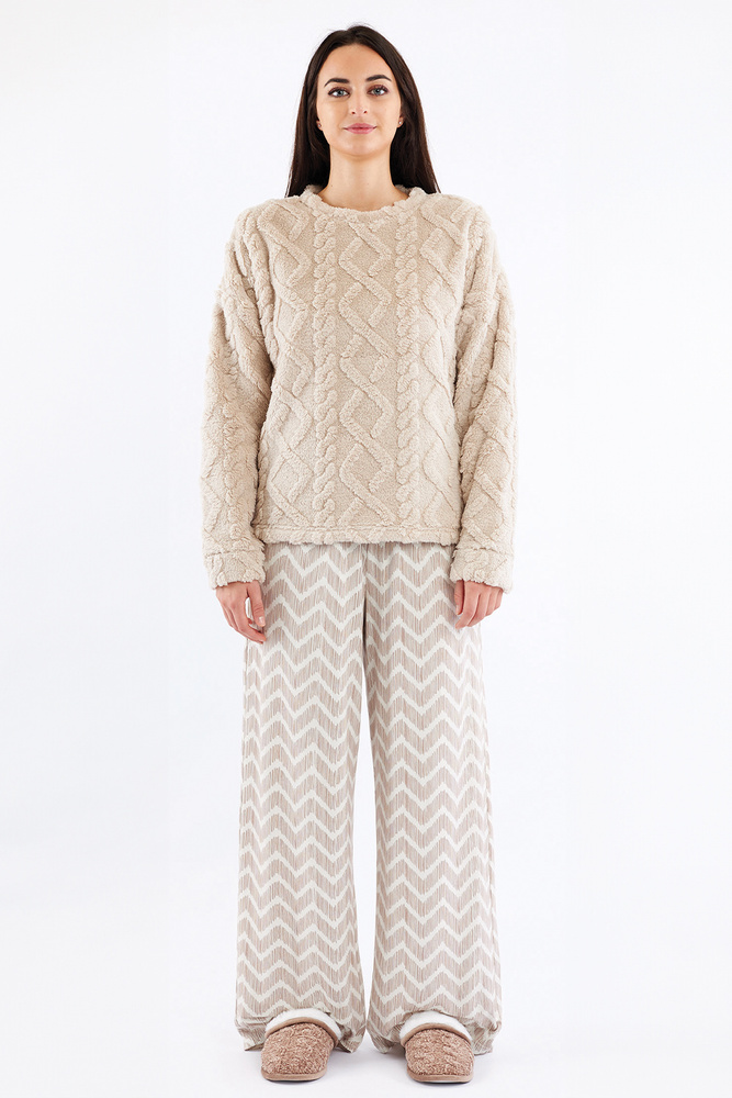 Sofie Dámské pyžamo Sorbetto beige - hřejivá sherpa, palazzo, elegantní a měkké