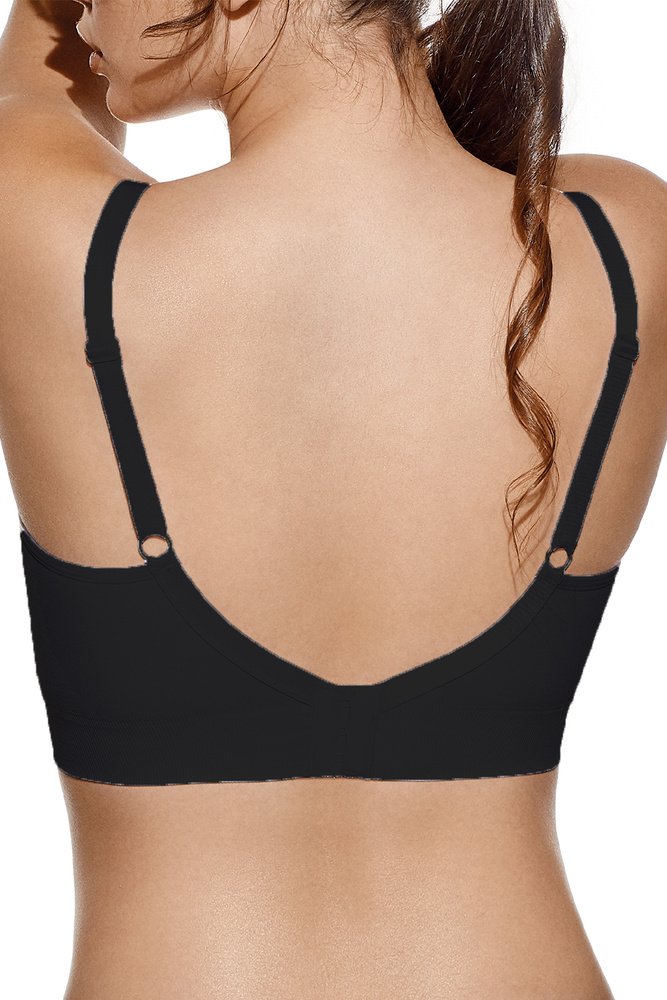 Konstrukce bez kostic zaručuje přirozenou podporu prsou bez tlaku a speciální systém zapínání umožňuje rychlé odepnutí košíčků jednou rukou - kojení je tak pohodlné a diskrétní.