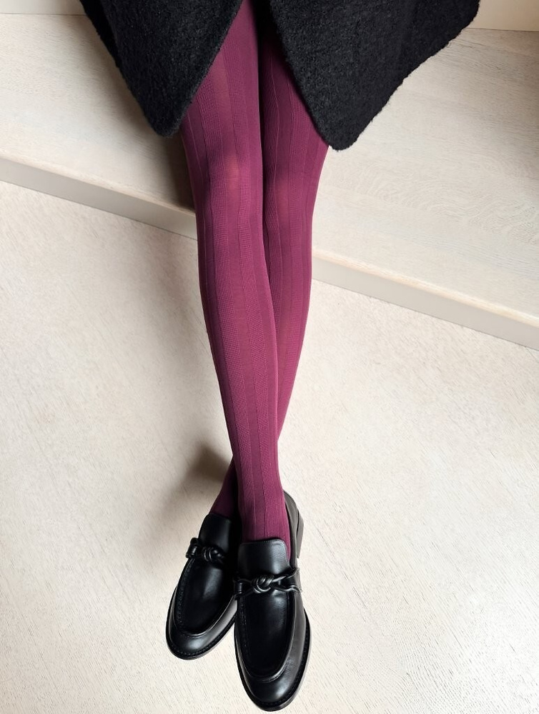 Veneziana Linea Arte punčochové kalhoty 40 den z vinného mikrovlákna, módní pruhovaný vzor
