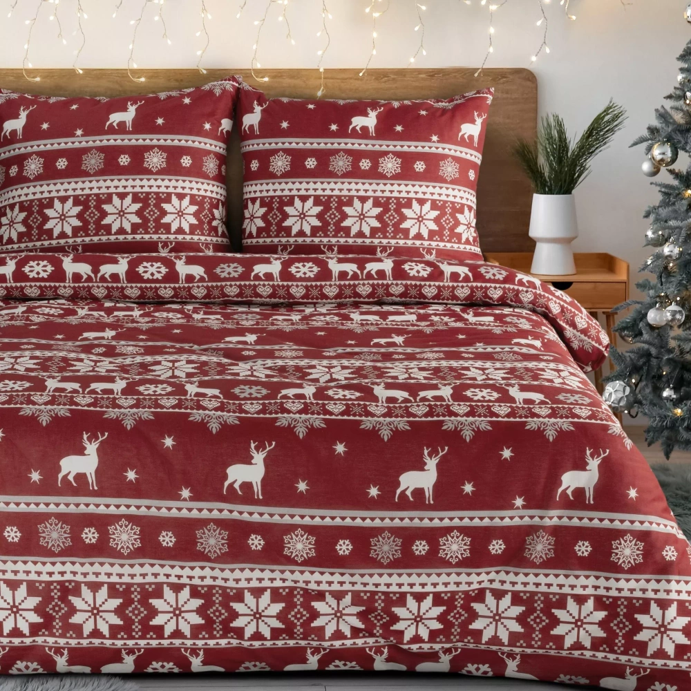 Sada je oboustranná - jedna strana je zdobena jemným svátečním potiskem, zatímco druhá zůstává hladká, což vám umožní přizpůsobit vzhled postele vaší náladě a interiéru.