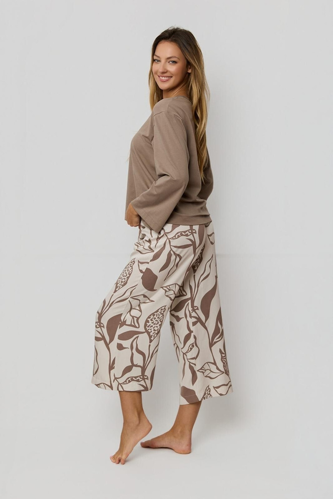 Dámské pyžamo Luna PS75 Mefemi by Nipplex mocha - bavlněné tričko + viskózové 7/8 kalhoty | Premium Comfort & Style