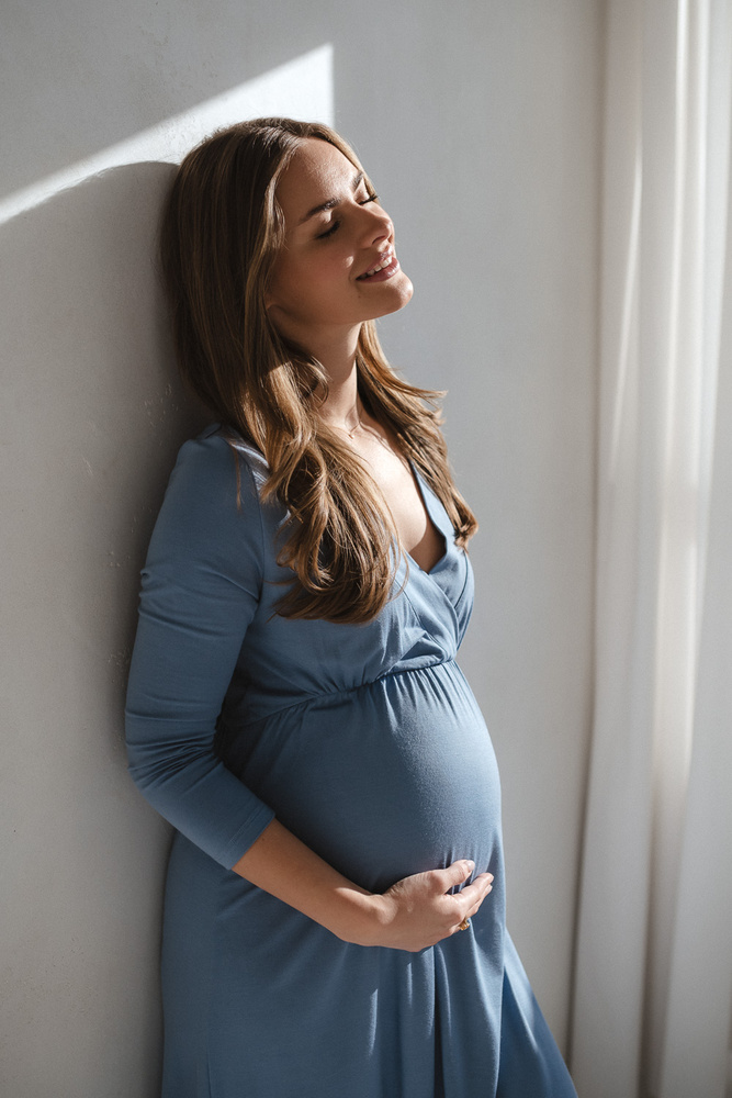 Košilka se snadno přizpůsobí rostoucímu bříšku a i po porodu krásně sedí na každé postavě. Délka poskytuje pohodlí a pocit volnosti při chůzi po oddělení.