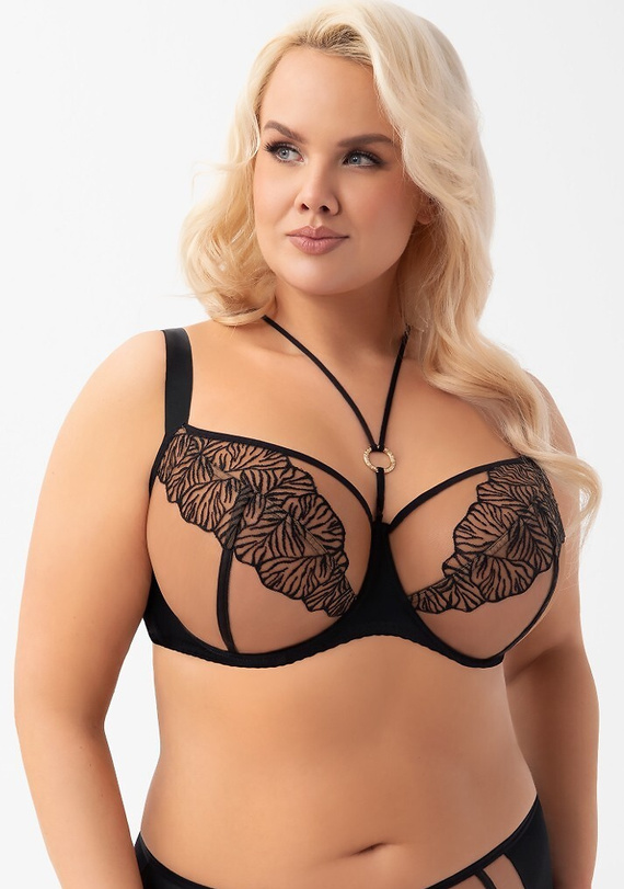 Měkké košíčky z dvojité vrstvy tylu se dokonale přizpůsobí tvaru prsou, poskytují přirozený vzhled a vynikající oporu bez vycpávek. Boční velrybí kostice účinně zabraňují vyhrnování látky, zatímco elastická záda z lycry stabilizují obvod i při větším poprsí.