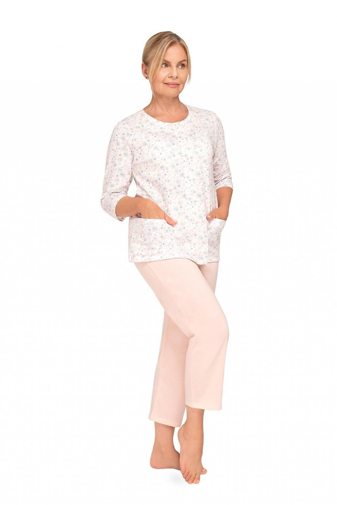 Pyžamová košile je zdobena decentním květinový vzor, který dodává lehkost a ženský nádech. Délka rukávu 3/4 model je ideální pro celoroční použití, a to jak za teplejších, tak chladnějších nocí. Půlkruhový výstřih a zapínání na knoflíky pohodlnější nošení a snadnější oblékání.