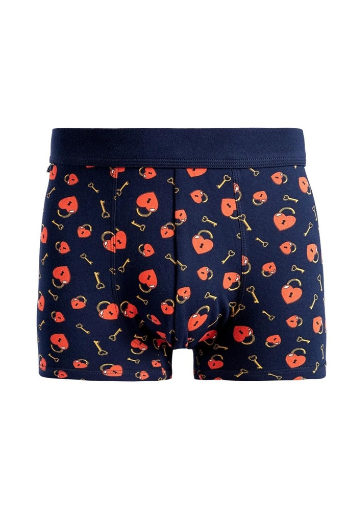 Tmavě modrá barva působí klasickým, mužným dojmem, zatímco potisk s motivem srdce a klíče jemně zdůrazňuje symboliku blízkosti, lásky a jedinečného vztahu. Největším rozdílem je originální balení ve skleněné nádobě, což z boxerek dělá hotový, neobvyklý dárek - bez nutnosti dalšího balení.