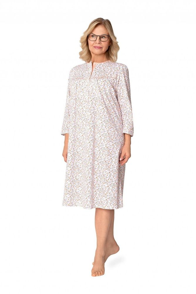 • Klasická noční košile Martel Bogna II s dlouhými rukávy, ušitá z měkké přírodní bavlny. Zapínání na knoflíky, jemné řasení u výstřihu - pohodlné a elegantní, ideální jako dárek pro babičku.