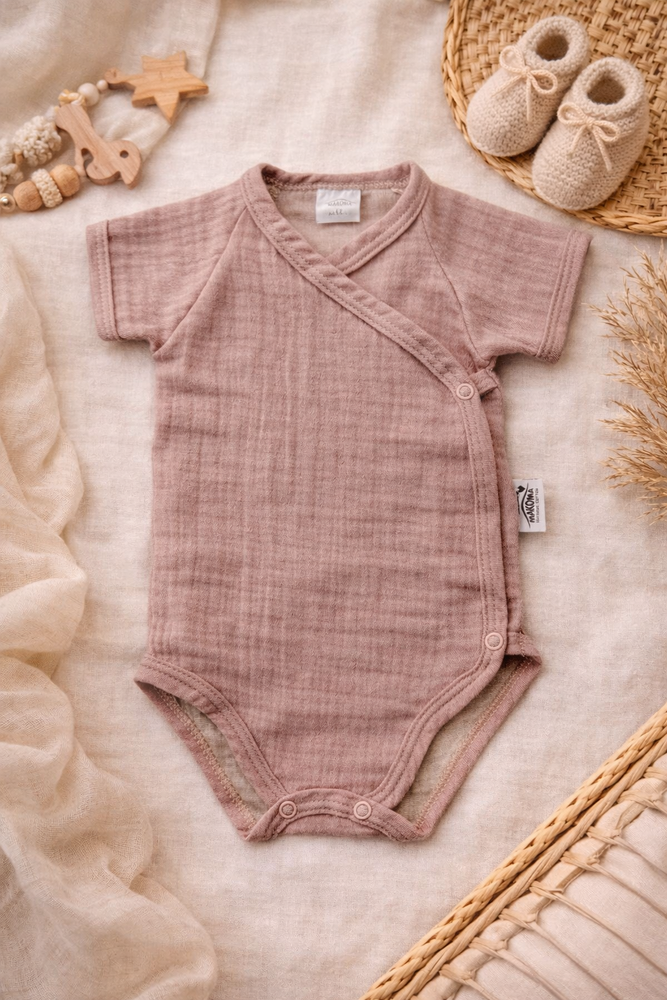Mušelínové body Just Muslin 03235KR Makoma rose - krátký rukáv, obálka, 100% bavlna