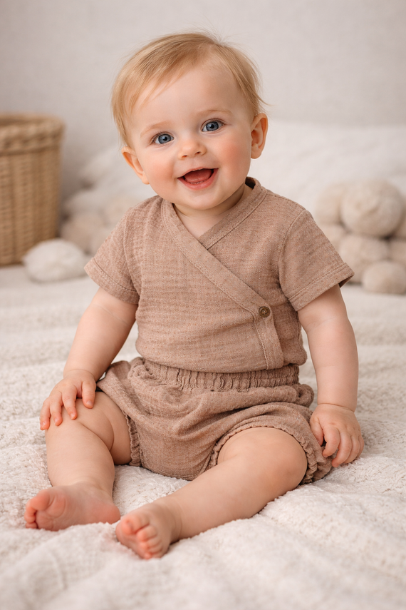 Pokud hledáte lehké dětské body na jaro a léto, která je šetrná k pokožce, praktická pro každodenní použití a pohodlná od prvních dnů života, mušelínové body Just Muslin Makoma s krátkými rukávy a obálkovým zapínáním je velmi dobrou volbou. Tento model doporučujeme zejména v případě, že chcete přírodní materiály a rychlý způsob oblékání dítěte bez stresu.