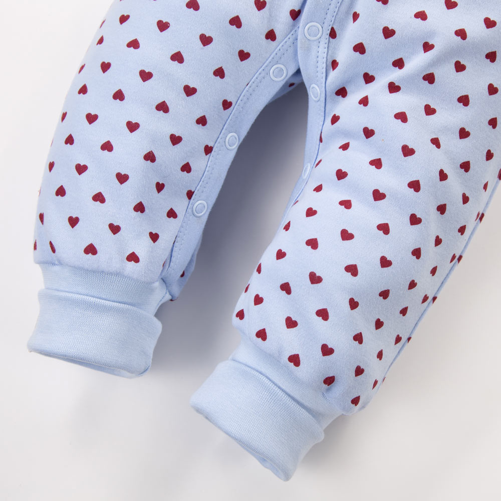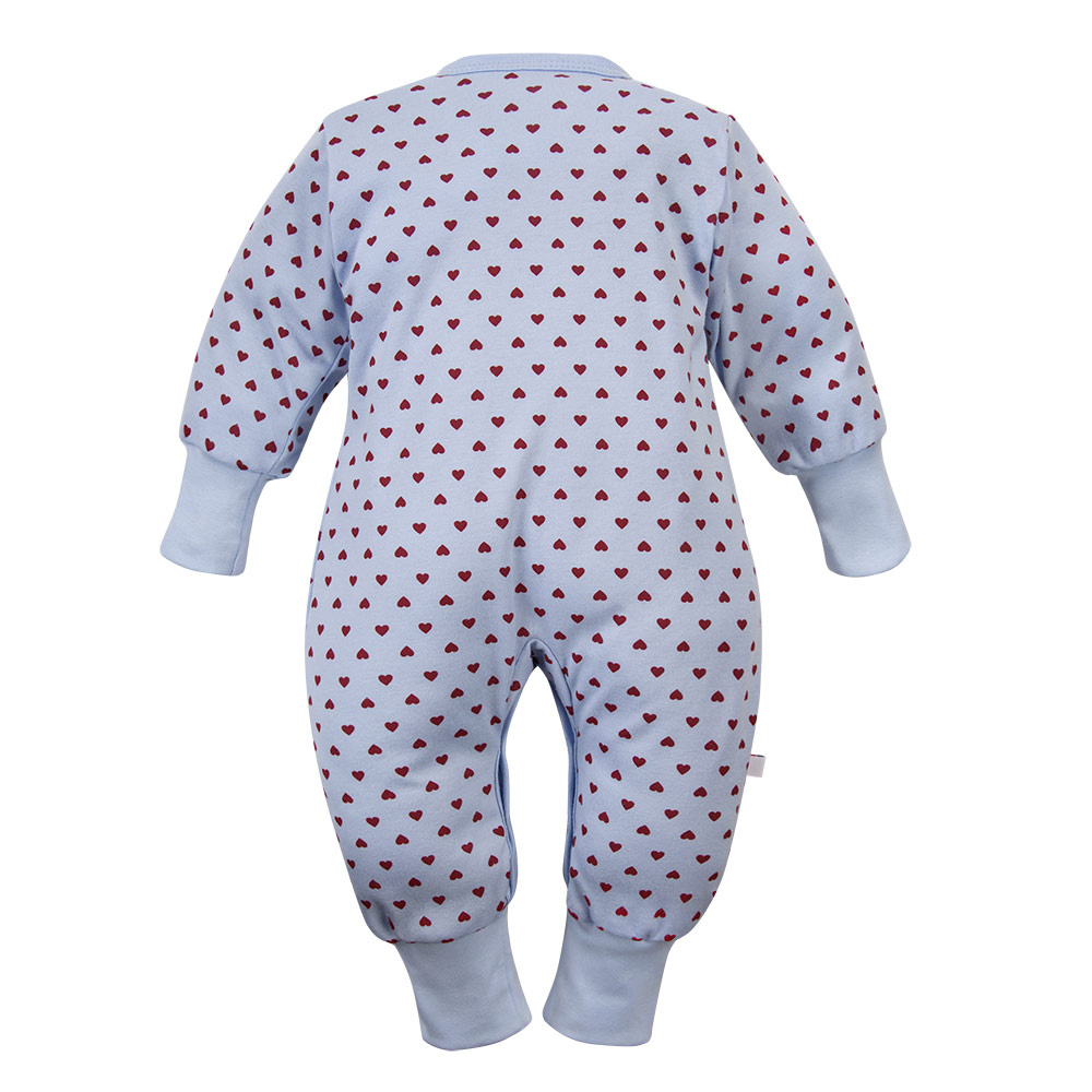 Dětský overal Love Eevi bez chodidel modrý se srdíčky 100% bavlna
