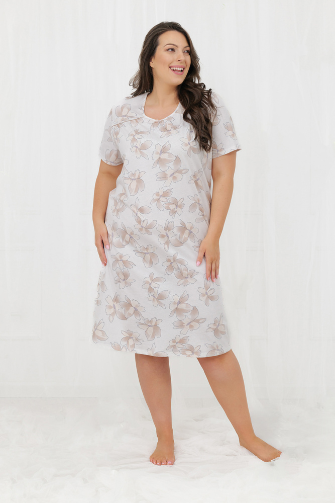 - Dámská noční košile s krátkým rukávem ze 100% bavlny (140 g/m²), dostupná až do 4XL. Prodyšná, měkká a pohodlná pro každodenní spánek i domácí relax.