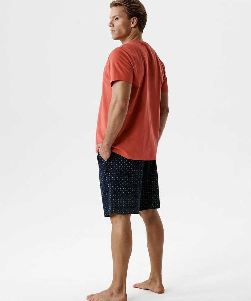 Pro koho je ideální? Pro muže, kteří hledají kvalitní pánské pyžamo z bavlny s krátkým rukávem a kraťasy – pohodlné na spaní i relax doma.