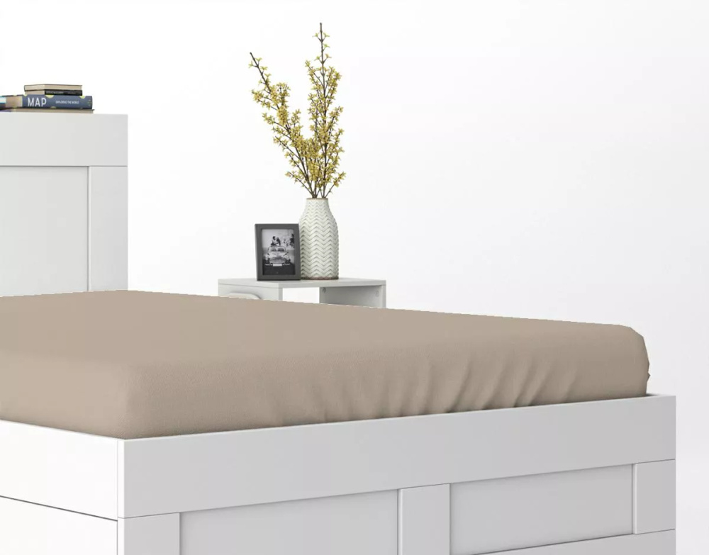 Model je vybaven praktickou elastickou gumou, která pomáhá udržet prostěradlo na matraci během celé noci. Díky boční rezervě látky přibližně 25 cm se prostěradlo snadno nasazuje a dobře obepíná matraci, takže zůstává stabilní i při pohybu během spánku.