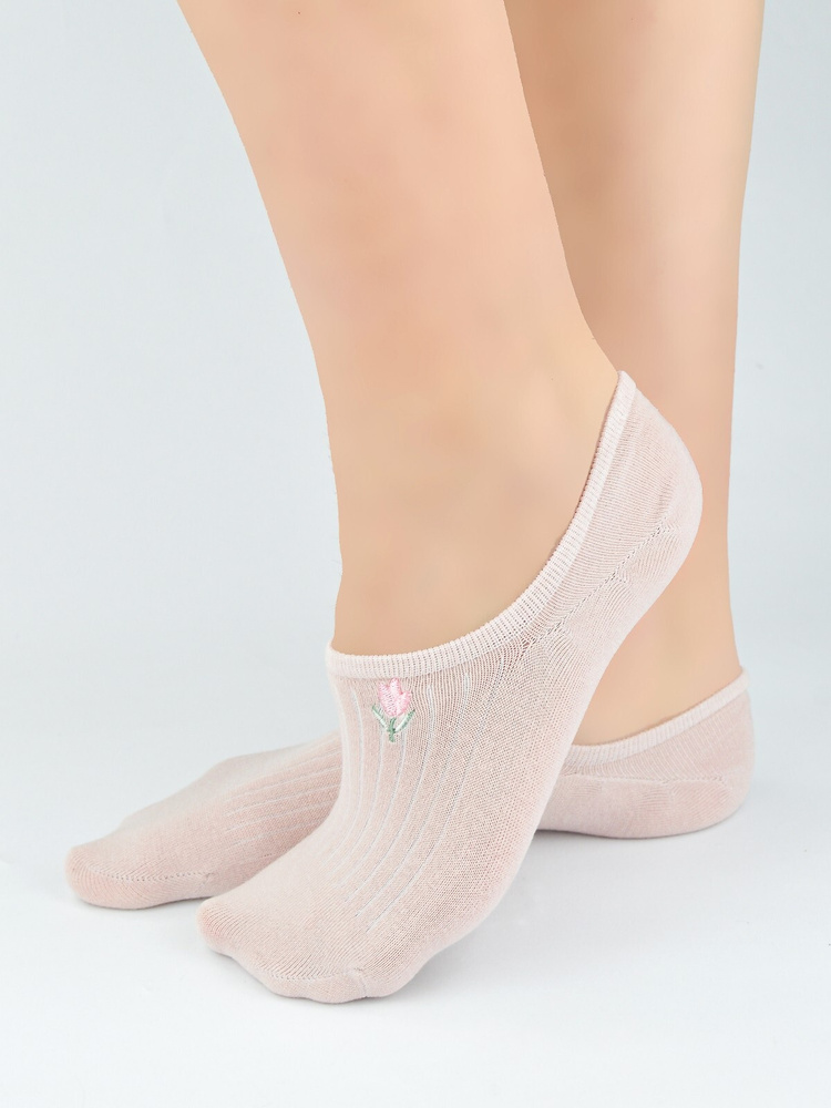 - Bavlněné dámské baleríny Noviti ST097 z pruhované látky s dekorativním vyšívaným květinovým motivem nebo mašličkou, plochými švy a silikonem na patě – pohodlné, elegantní a ideální pro každodenní nošení.