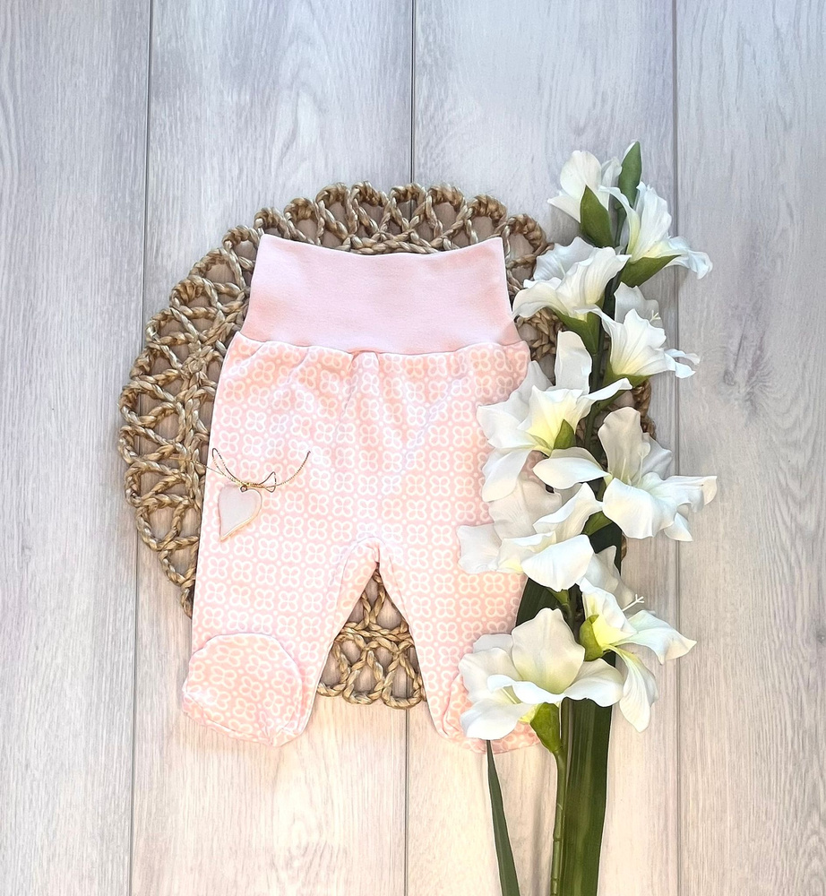 • Měkké kojenecké polodupačky z bavlny s jemným květinovým vzorem – prodyšné, pohodlné a ideální na každý den. Bez tlaku na bříško, maximální komfort pro miminko.
