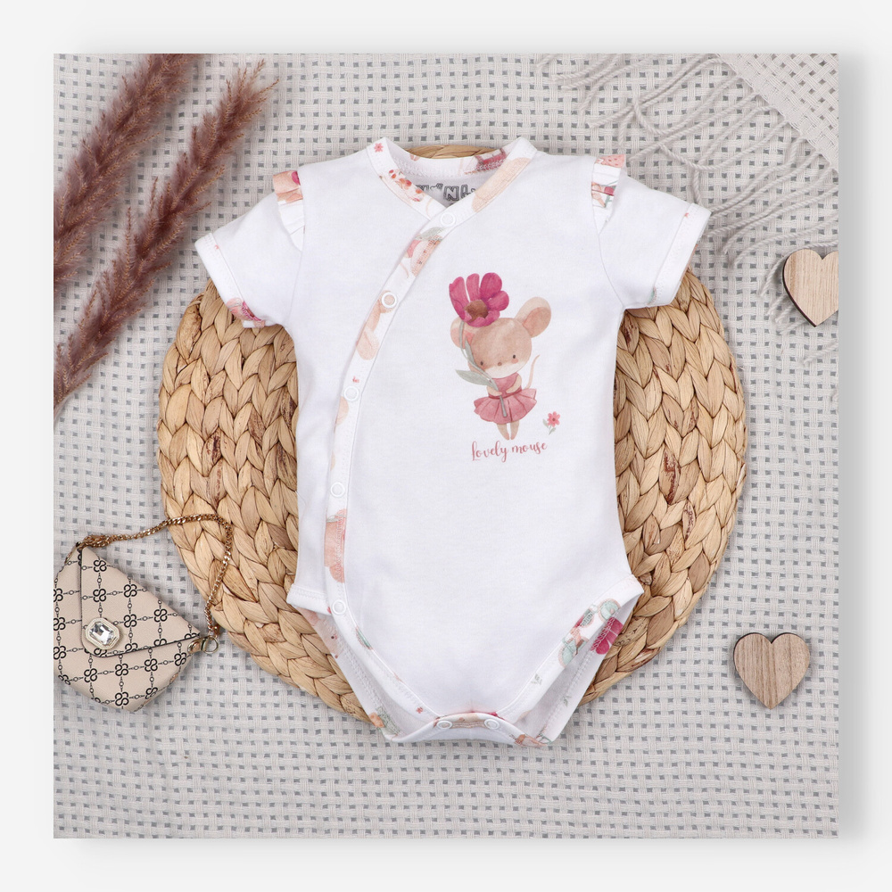 Dětské body Nini Little Mouse organická bavlna zavinovací krátký rukáv