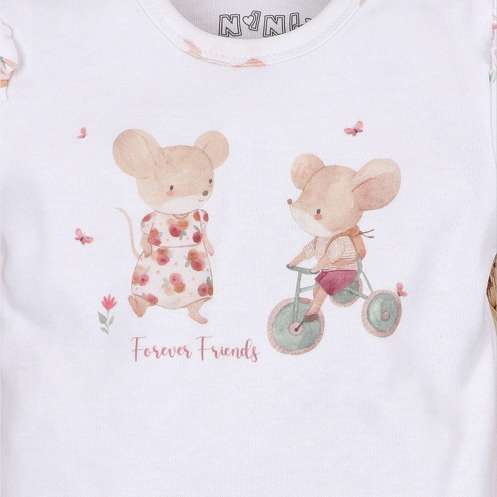 Dětské body Nini Little Mouse organická bavlna zapínání na rameni krátký rukáv