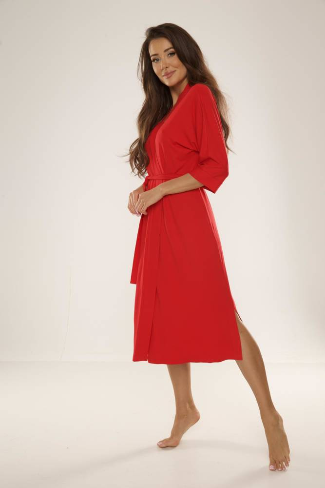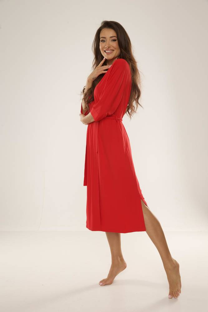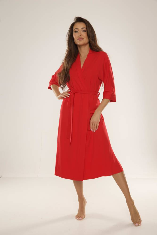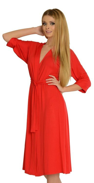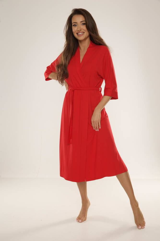 • Elegantní dámský župan 942 Visa značky De Lafense z vysoce kvalitní viskózy. Dlouhý střih, 3/4 rukávy a pásek vytvářejí ženský a klasický vzhled.