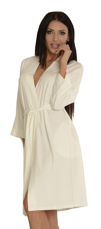 Dámský župan z vysoce kvalitní viskózy 94 % s elastanem. Krátké, délka ke kolenům, zavazování v pase, 7/8 rukávu. Skvěle se hodí k tričku nebo pyžamu z kolekce Visa. Dodává pocit pohodlí a svobody, je svázán páskem, ideální jako domácí šaty. Vysoce kvalitní výrobek se při praní neroztahuje ani nezhoršuje!!!