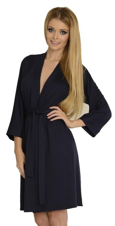 Dámský župan z vysoce kvalitní viskózy 94 % s elastanem. Krátké, délka ke kolenům, zavazování v pase, 7/8 rukávu. Skvěle se hodí k tričku nebo pyžamu z kolekce Visa. Dodává pocit pohodlí a svobody, je svázán páskem, ideální jako domácí šaty. Vysoce kvalitní výrobek se při praní neroztahuje ani nezhoršuje!!!