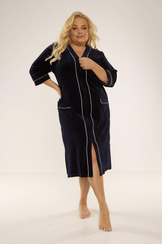 Dámský krátký župan z příjemného veluru, s 3/4 rukávy, zapínání na zip, dvě praktické kapsy. Župan se dokonale přizpůsobí tvaru těla, je mimořádně měkký a lehký. Zabalit se do něj po koupeli je potěšení!