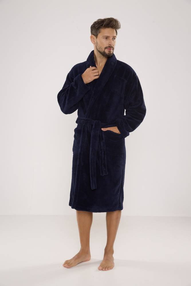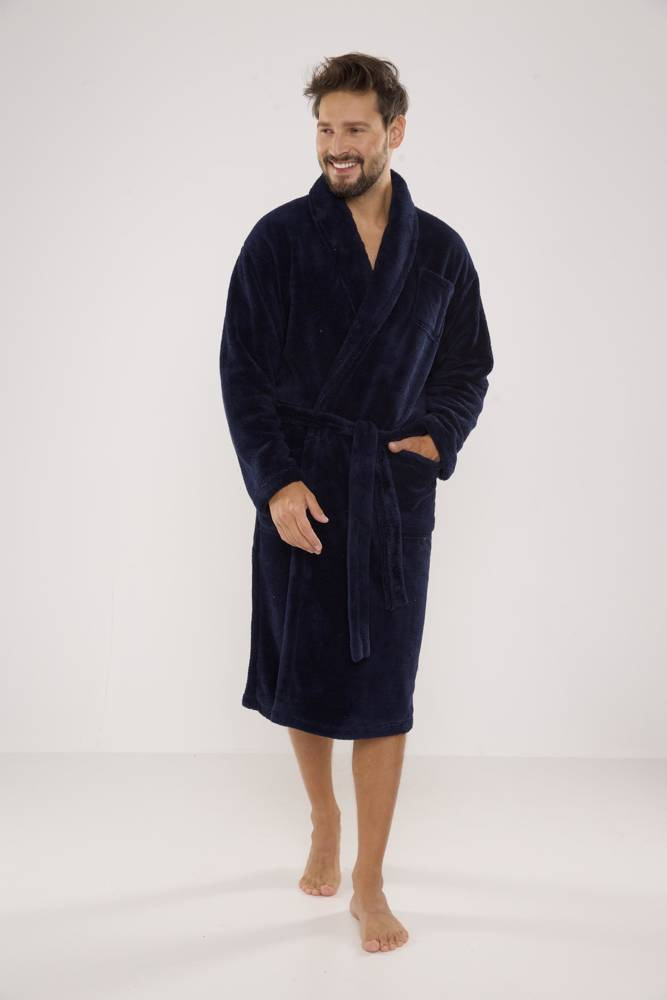 811 De Lafense pánský plyšový župan - tmavě modrý