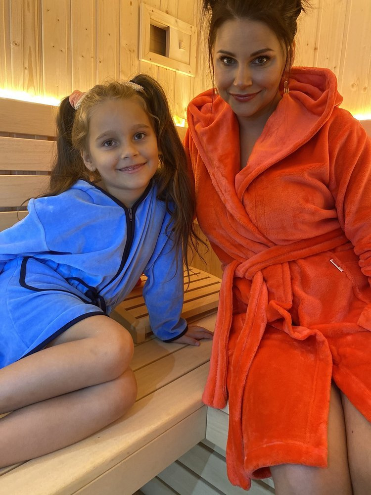 Krátký župan dětská bunda s kapucí a zipem. Vyrobeno z veluru. Nastavitelné popruhy v pase. Model zdobený ušima na kapotě. Župan se dokonale přizpůsobí tvaru těla, je mimořádně měkký a lehký. Zabalit se do něj po koupeli je potěšení!