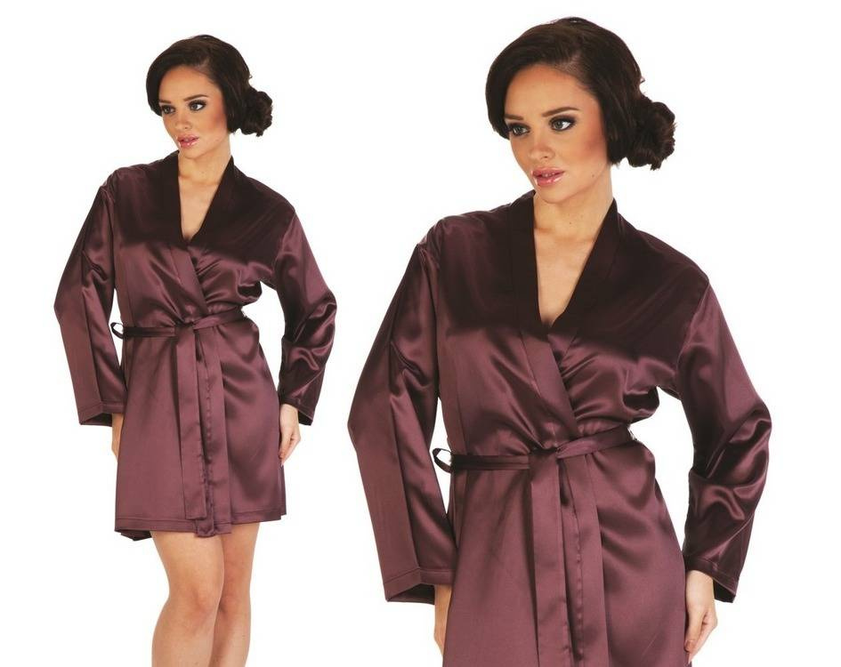 Jednoduchý krátký saténový župan zaujme svou elegancí a téměř všestranným použitím.