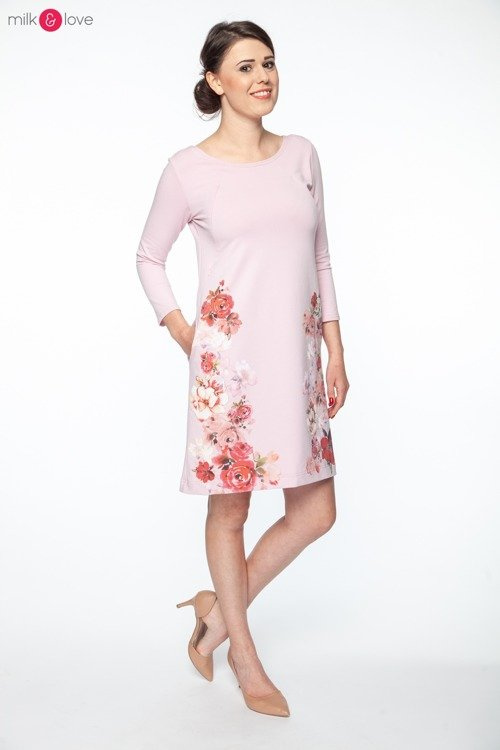 Sukienka ciążowa i do karmienia MilkA Milk&Love pudrowy róż w kwiaty