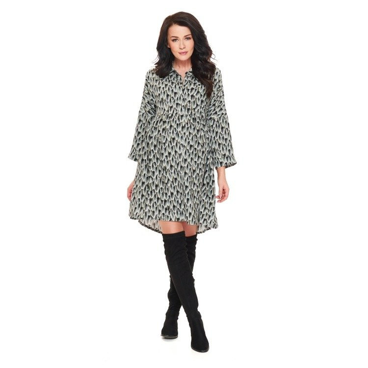 Koszulowa sukienka,która doskonale wpisuje się w najnowsze trendy. Rozkloszowany krój oraz odcięcie pod biustem sprawiają, że sukienka dostosowuje się do rosnącego brzuszka. Przewiewny oraz bardzo delikatny, materiał oraz niedrapiące szwy gwarantują komfort użytkowania. Sukienkę możesz wykorzystywać także po ciąży – górna, zapinana na guziczki, część ułatwia wygodne i dyskretne karmienie piersią. Kobieca, zwiewna sukienka ciążowa, która nie krępując ruchów, pozwoli Ci pięknie wyglądać na każdym etapie ciąży i po porodzie.