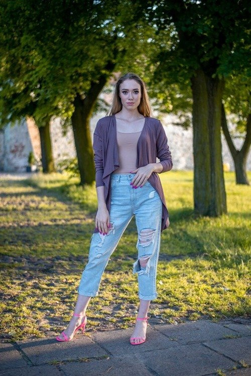 Cienki kardigan, idealny na chłodniejsze dni i wieczory.