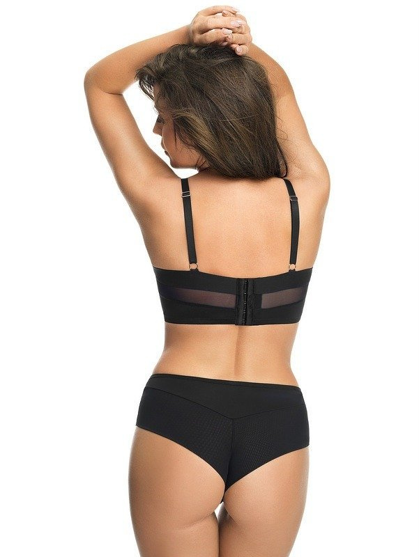 Fenomenální push-up podprsenka push-up s kosticemi, vyrobená z lesklé látky, v horní linii jemná tylová síťovina podšitá béžovou látkou. Má nastavitelné, neodnímatelné ramenní popruhy. . Stabilní obvod, s boční velrybí kostí. Široká zadní část se zapínáním na 6 háčků a očí s třístupňovou úpravou lemu.