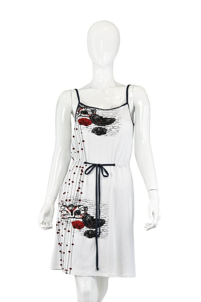 Dámské tričko zdobené barevným vzorem, z vysoce kvalitní viskózy. Úzké, nastavitelné popruhy. Na adrese výšky stahovací šňůrka v pase pro nastavení obvodu.