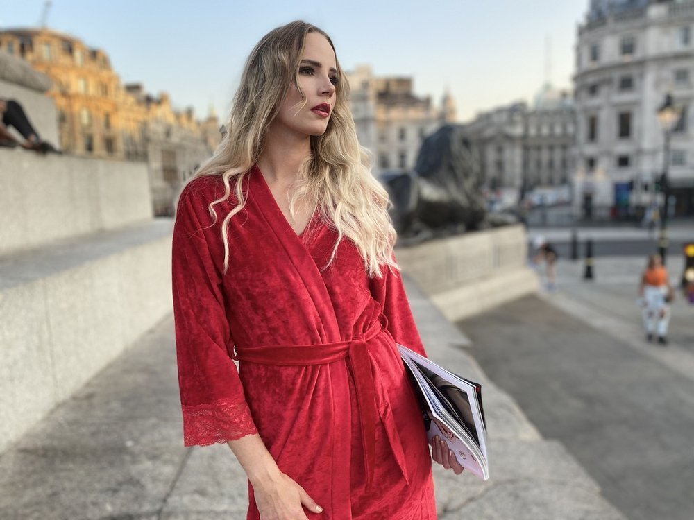 Dámský župan z kvalitního bambusového veluru. Krátké, zavazování v pase, 3/4 rukávy. Manžety jsou zdobené výraznou květinovou krajkou. Župan se dokonale přizpůsobí tvaru těla, je mimořádně měkký a lehký. Zabalit se do něj po koupeli je potěšení!