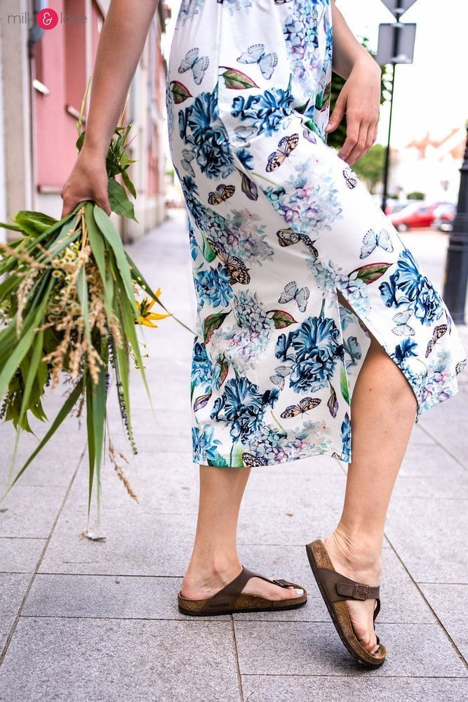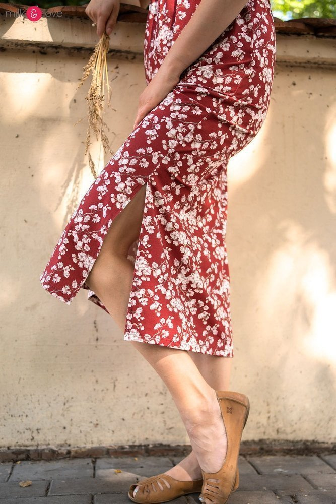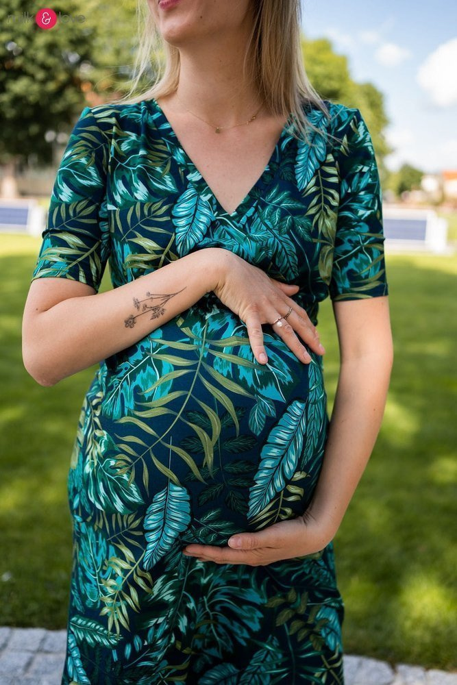 - Elegancka sukienka ciążowa wykonana z lekkiej wiskozy,