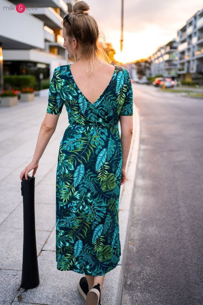 Sukienka ciążowa i do karmienia Two Ways LONG Milk&Love granatowa w tropikalne liście