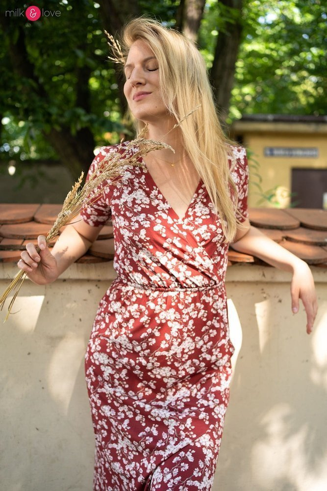 - Kopertowy krój i długość midi tworzą bardzo elegancki, kobiecy look