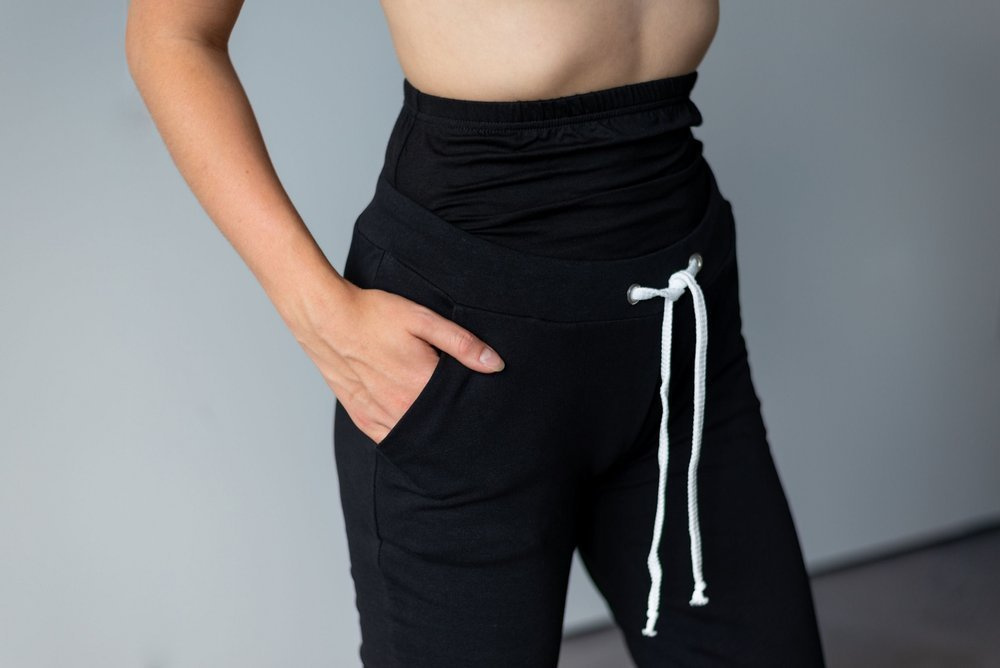 Spodnie dresowe wykonane z wysokiej jakości bawełny. Posiadają odpinany na napy pas który w czasie ciąży nachodzi na  brzuszek dzięki czemu spodnie nie spadają i nie zwijają się pod brzuchem, zapewniając komfort użytkowania, a po tym okresie z łatwością może zostać odpięty i możesz użytkować spodnie jak każde inne .