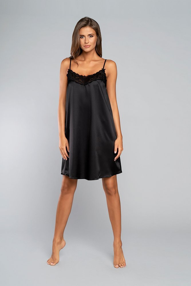 Noční košile na dotek s úzkými ramínky, krátká Italia Fashion - černá