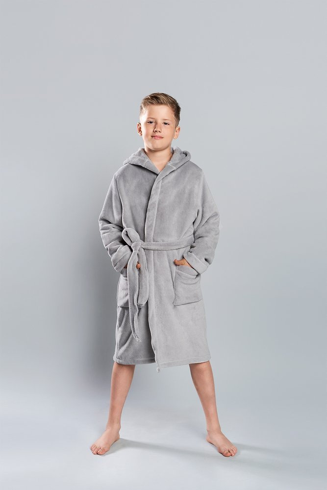 • Pánský župan,kapsy, kapuce.Svázané v pase.Polský výrobce 100% polyester Chlapecký župan Mimas lze dokoupit do sady.