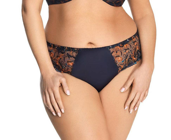 Krásné plné kalhotky z měkkého mikrovlákna a jemné tylové síťoviny s barevnou výšivkou