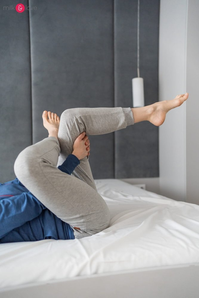 Spodnie z dzianiny w takim kolorze, żeby idealnie pasowały bluz ciążowych i do karmienia Milk Please. Kupując komplet - bluzę i spodnie, masz dresy ciążowe i później dresy do karmienia piersią w jednym!