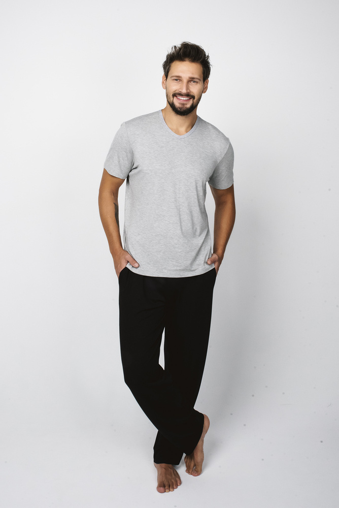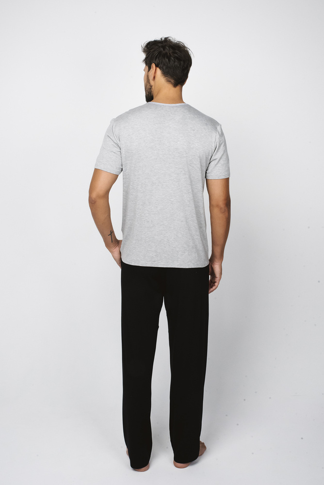 Dallas Pánské pyžamo s krátkým rukávem, dlouhé kalhoty Italian Fashion- melange/black
