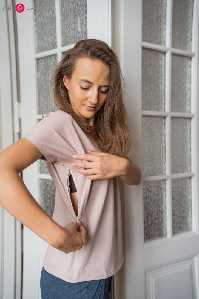 Two Ways bluzka ciążowa i do karmienia dwustronna krótki rękaw Milk&Love beżowy