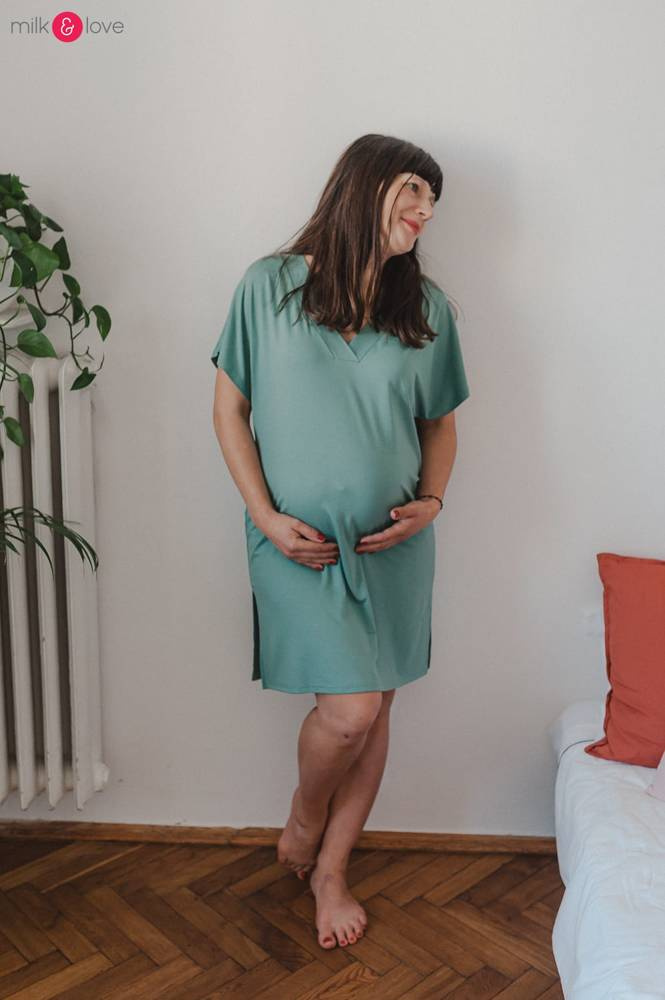 Koszula uszyta z wysokogatunkowej wiskozy bambusowej z dodatkiem elastanu, dzięki czemu nie "wyciąga się" i po praniu wraca do pierwotnego kształtu. Niezwykle elastyczna, dlatego świetnie sprawdzi się jako sukienka porodowa.